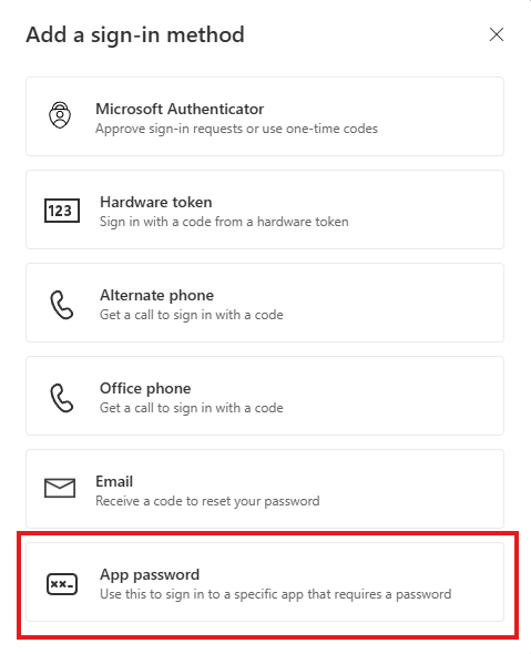 3. On the Add a method page, select “App password” from the list, and then select Add.