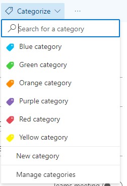 7. Categorize will give you the option of selecting different color flags for the meeting
