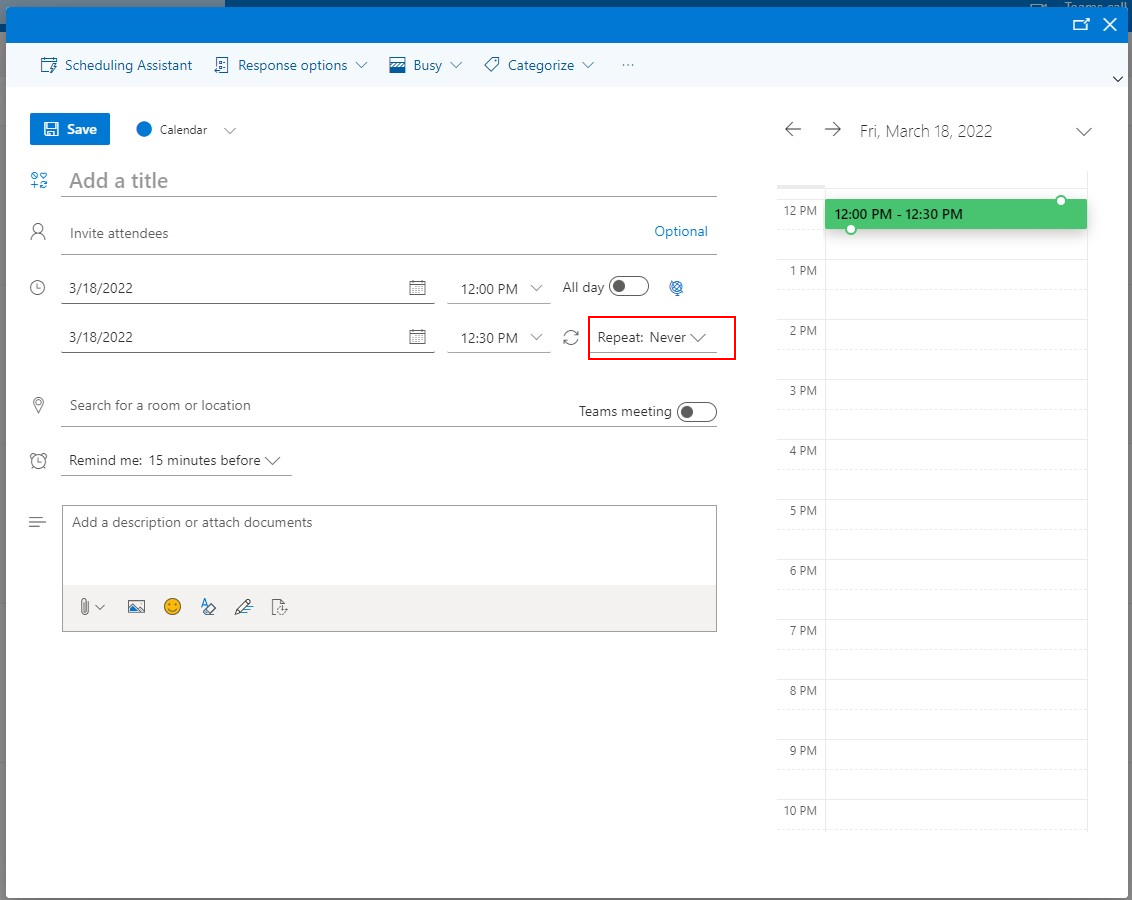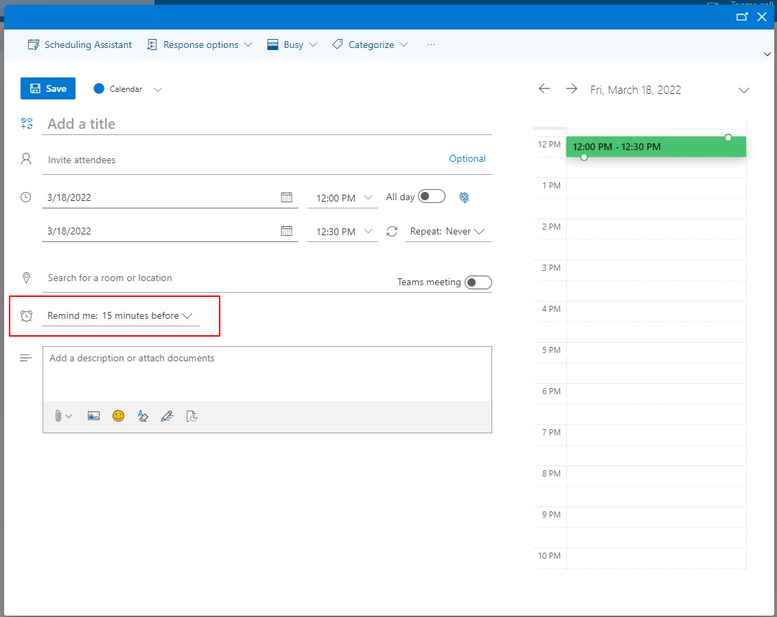 You can also select if this will be a meeting held in Microsoft Teams