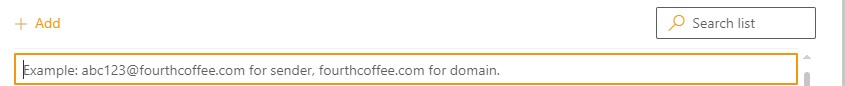5. Enter the email address or domain into the field and press enter, this will add it to the list