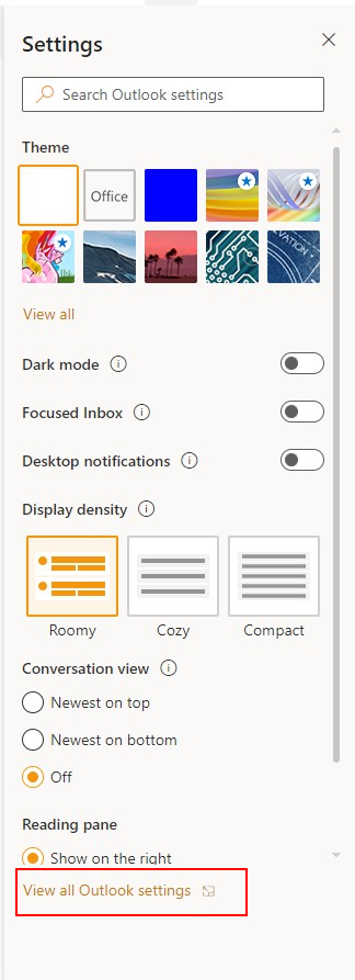 2. Click on “View all outlook settings in the bottom of the menu.