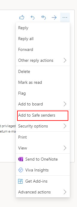 8. Select the “Add to Safe senders” button