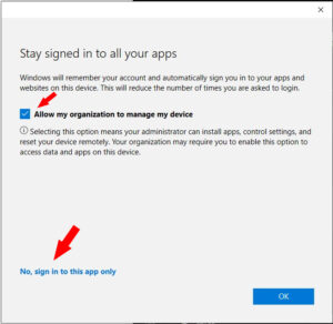 6. Unselect the checkbox and press “No, sign into this app only.”