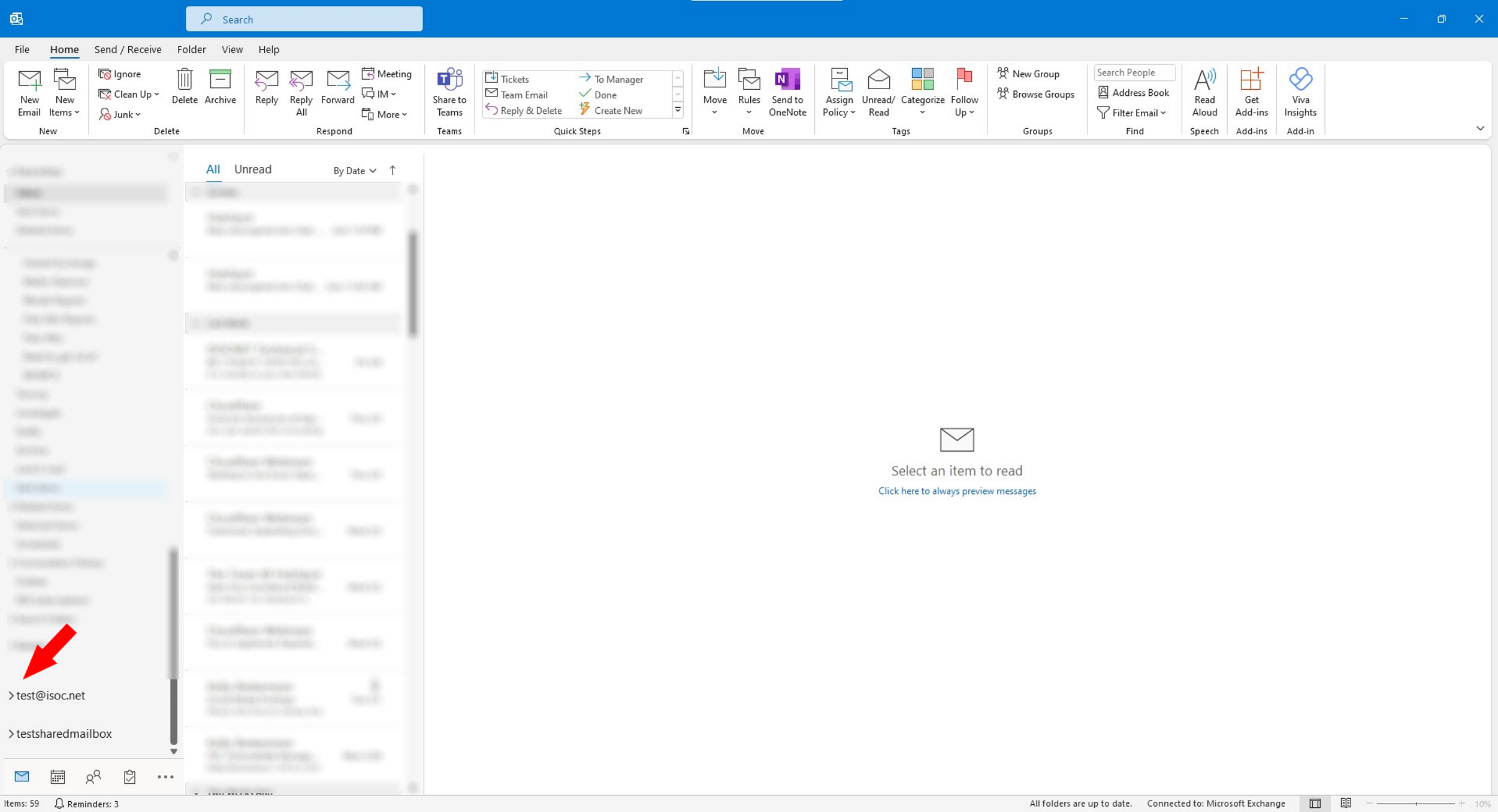8. Your new inbox should now be on the left-hand side. It will be collapsed; you will need to press the arrow to the left of the Inbox to see the contents of the mailbox.