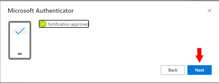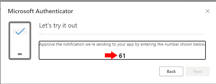 15. Once you have entered this number into your phone and chosen Yes, the next button will light up, and you can click next to finish the authentication process.