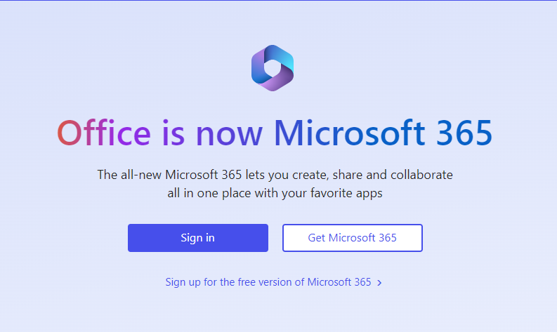 6. On your computer, open a web browser, go to office.com and press the purple Sign in button. MFA should be turned on by the Global Administrator within your organization. If you are already signed in, you will want to sign out of the account the MFA was turned on for.
